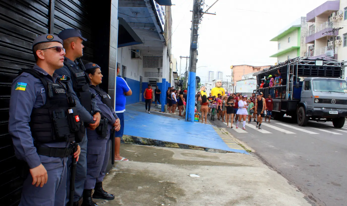 Janete Monteiro, que trabalha no segmento há 20 anos, celebrou a ampliação do efetivo policial pelo Governo do Estado para a tranquilidade de brincantes e trabalhadores na folia. Janete Monteiro e as filhas, Valéria e Iasmin, trabalham e se divertem durante a passagem do bloco A BandaFoto: Cláudio Morais/Sejusp Quem subiu a Avenida Feliciano Coelho com o bloco A Banda, na tarde da terça-feira, 17, pôde observar dois cenários distintos: a Carreta da Segurança, maior aparato tecnológico adquirido pelo Governo do Amapá para o monitoramento de grandes eventos, e o ponto de venda de bebidas da come...