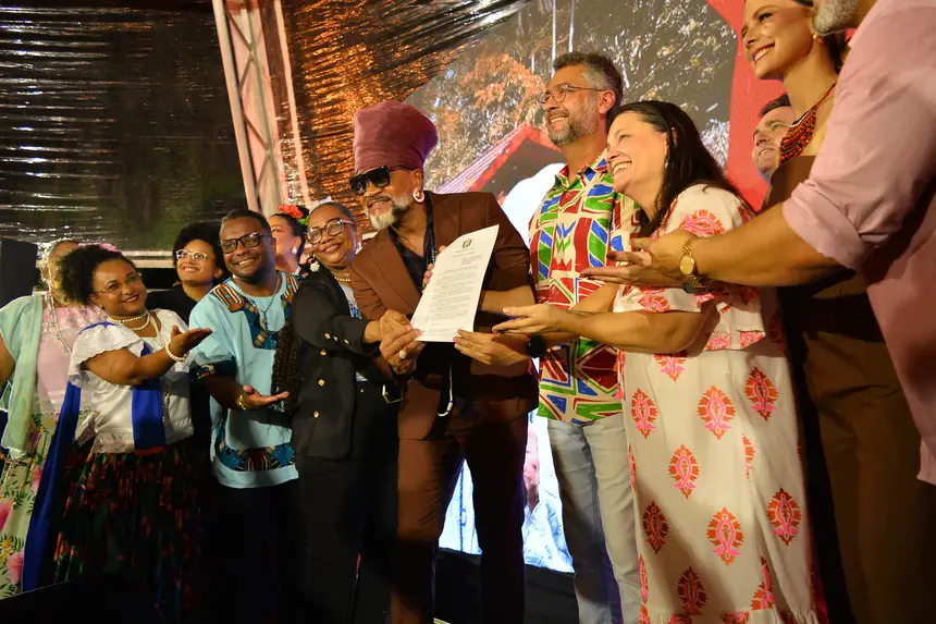 Clécio Luís também homenageou 120 tocadores com a honraria Mestre Jorge, destacando a força simbólica e ancestral da cultura afro-amapaense. Carlinhos Brown recebe o título de Embaixador do Marabaixo ...