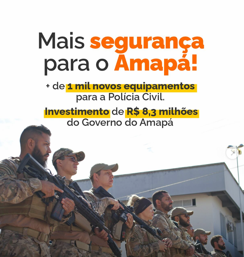 Nesta terça-feira, 13 de maio, o Governo do Estado entrega novos equipamentos à Polícia Civil, beneficiando delegacias de Macapá e de outros municípios. A ação faz parte da política de combate às facções criminosas.