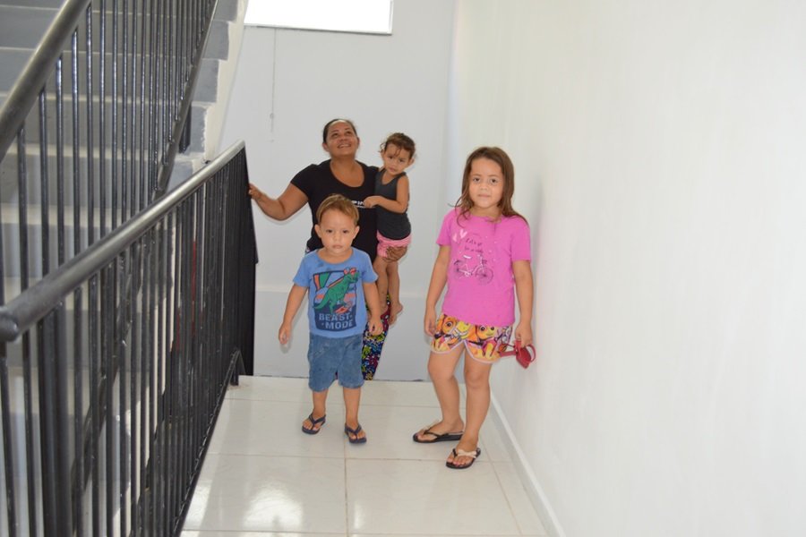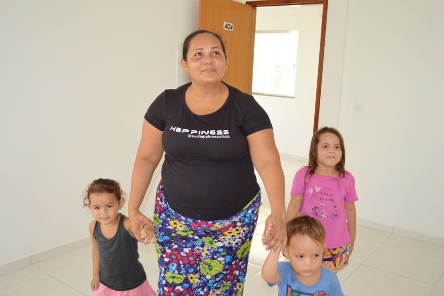 Os filhos mais novos, o casal de gêmeos Aruna Valentina e Kaleb Valentin, de 3 anos, acompanhados da irmã Ágata Jasmine, de 5 anos, acompanharam a mãe para conhecer o novo lar. Ela ressalta que a residência dela pegou fogo no ano de 2007 e perdeu tudo. Desde esse período, passou a morar de aluguel e sonhava com o dia que teria a casa própria.