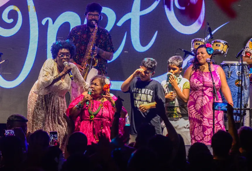 Após cerca de uma hora de show, Dona Onete chamou para o palco a cantora Verônica dos Tambores. A artista é conhecida pelas suas apresentações com canções autorais que versam sobre Mazagão Velho, sua terra natal.